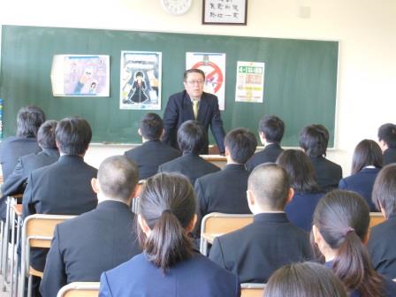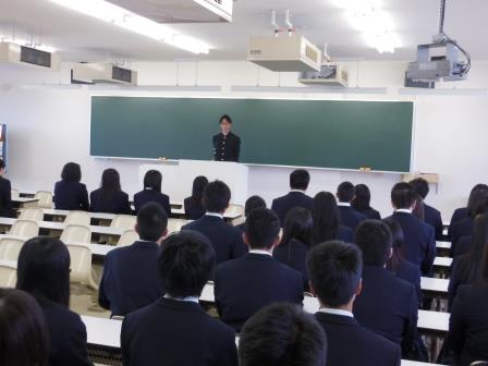 10日(金)には、いわき明星大学にサテライト校を置く、双葉・双葉翔陽・富岡の3校合同で顔合わせ式を行い、生徒会長の高田駿佑君が代表挨拶をしました。