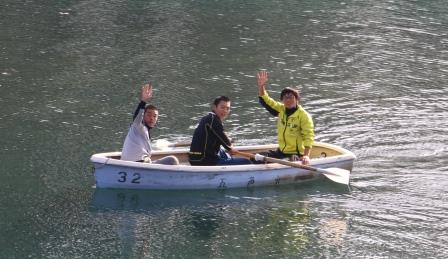 午後は、近くの毘沙門沼で自由時間。紅葉を楽しんだり、ボートに乗ったり。