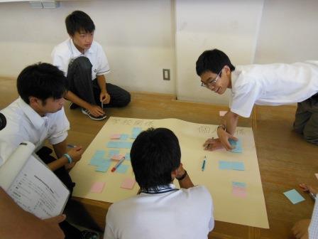その後、3つのグループに分かれ、各校で抱える課題をそれぞれが出し合い、それについてみんなで解決策を考えるというグループワークを行いました。