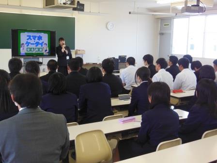 実際の事例などを交えながら、スマートフォンや携帯電話を利用した犯罪に巻き込まれないようにするため気を付けるべき点や、友人や知り合いとのコミュニケーションの取り方、家族や友人とルールを決めて使用すべきであることなど、大変参考になるお話をいただきました。