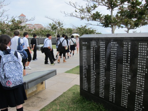 ここは、世界で唯一、敵味方関係なく、沖縄戦で亡くなられたすべての方の名前が刻印されている碑だそうです。