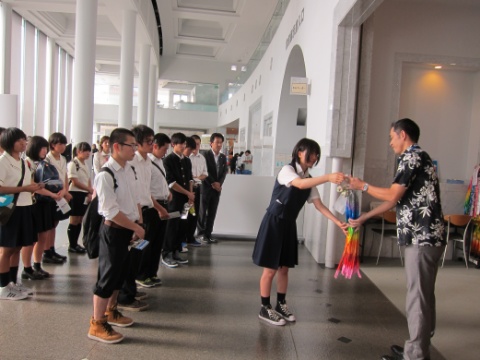 沖縄県平和記念資料館では、2学年全員で作った千羽鶴をお渡ししました。